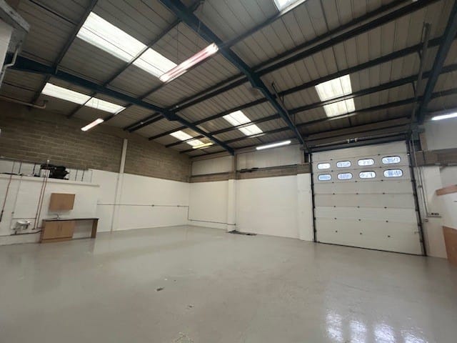 Unit 2 is a mid terrace industrial unit offering column free industrial/storage space with external parking and loading. The unit benefits from 3 phase power, an up and over loading door, an eaves height of 5.6m, a WC block and kitchenette.