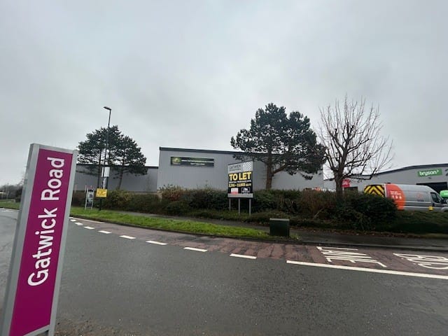 The unit itself is prominently situated on the roundabout junction of Radford Road and Gatwick Road.